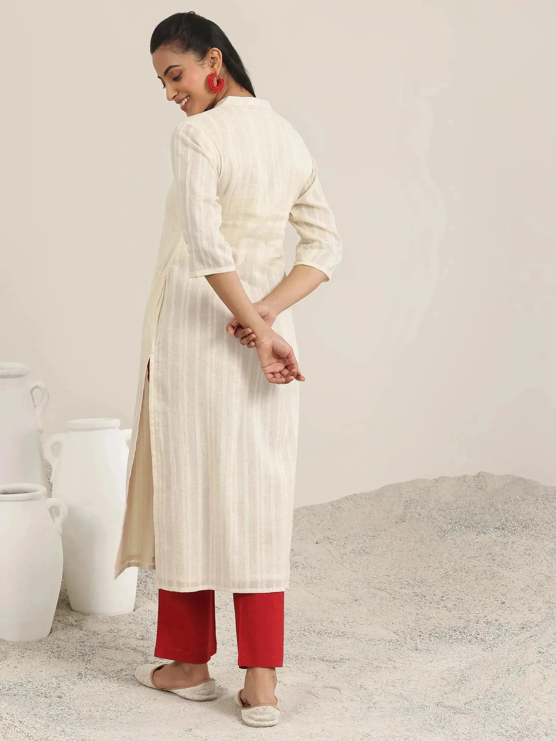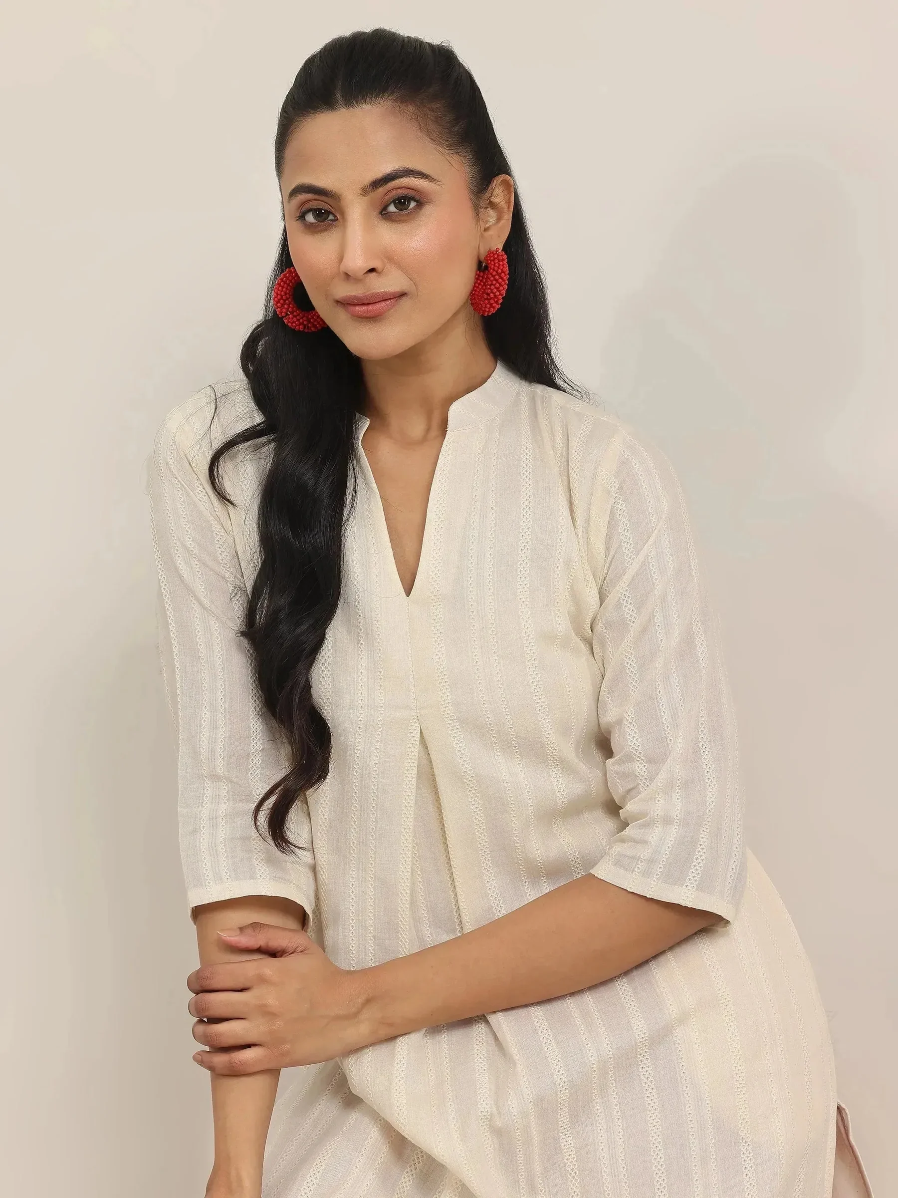 Zoya Off White Embroidered Cotton A-Line Kurti